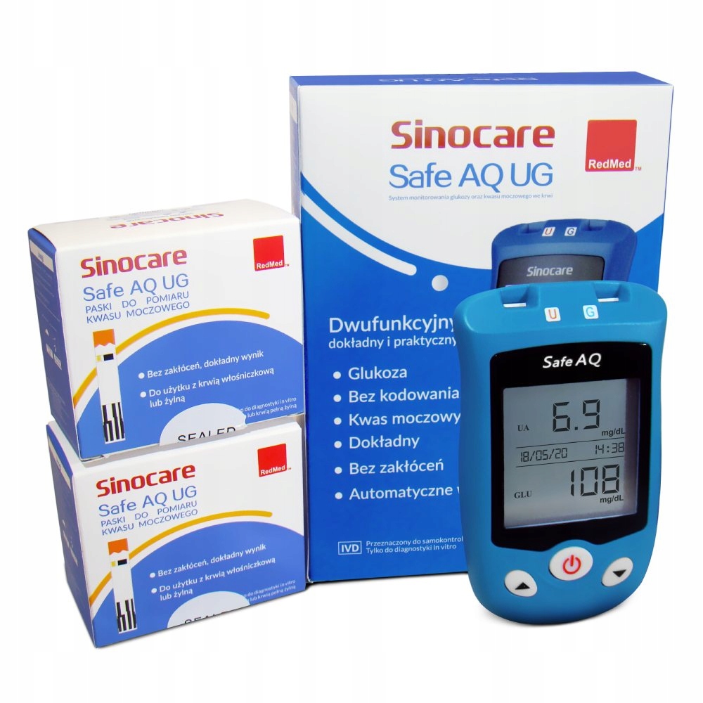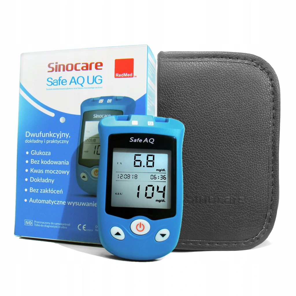 Zestaw Startowy Sinocare Safe AQ UG dla osób z cukrzycą i dną moczanową, podagrą, lub w ciąży.