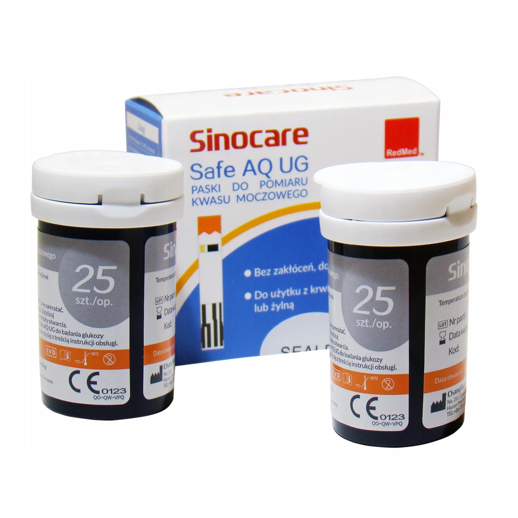System Sinocare Safe AQ UG daje użytkownikowi możliwość określenia poziomu dwóch parametrów jednym urządzeniem i w tym samym czasie. Na system składa się z elektroniczne urządzenie pomiarowe, oraz paski do testów glukozy i kwasu moczowego.