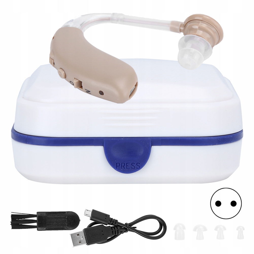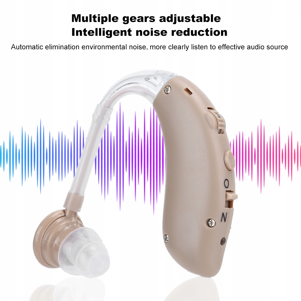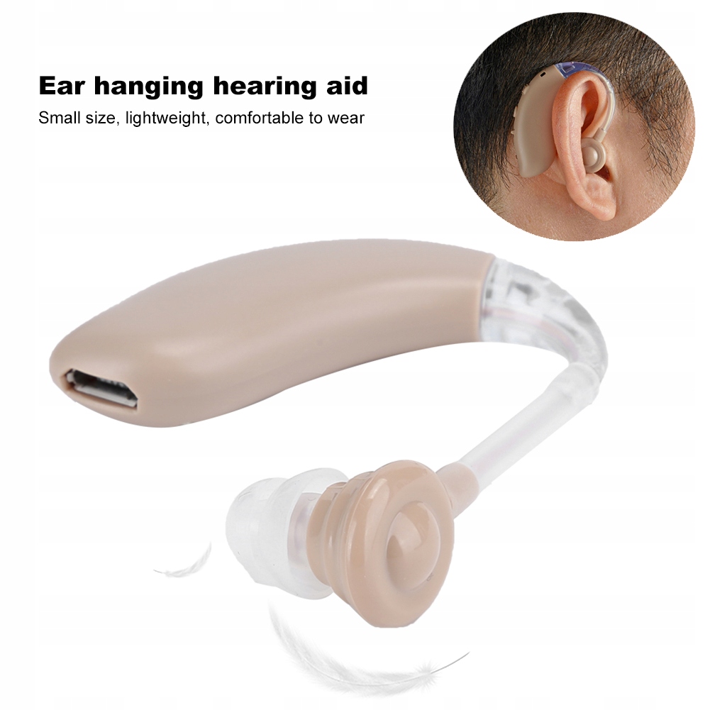 1. Aparat słuchowy wiszący na uchu, mały rozmiar, lekki, wygodny w noszeniu, zapewnia czysty dźwięk i doskonały komfort słuchania, łatwy w użyciu.
