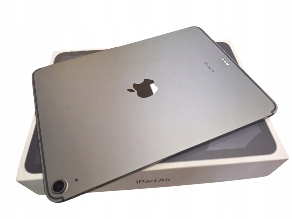 Używany Apple iPad Air 5gen 10,9" Space Gray w komplecie z oryginalną ładowarką oraz pudełkiem.