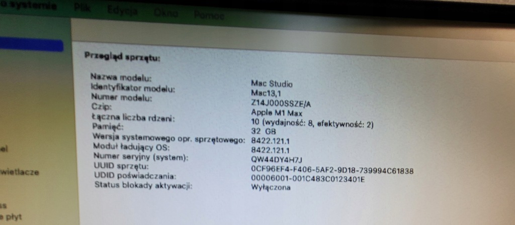 - Seria procesora i rdzenieApple M1 Max (10-rdzeniowy CPU + 32‑rdzeniowy GPU)