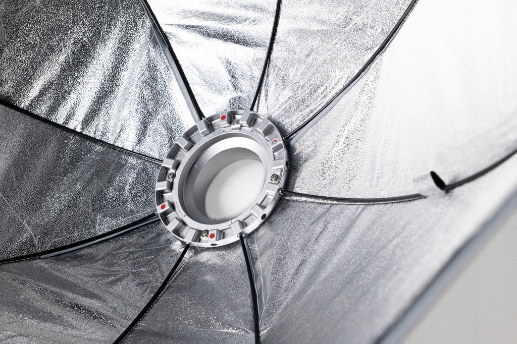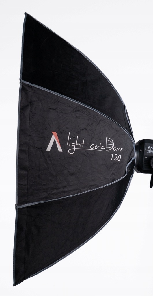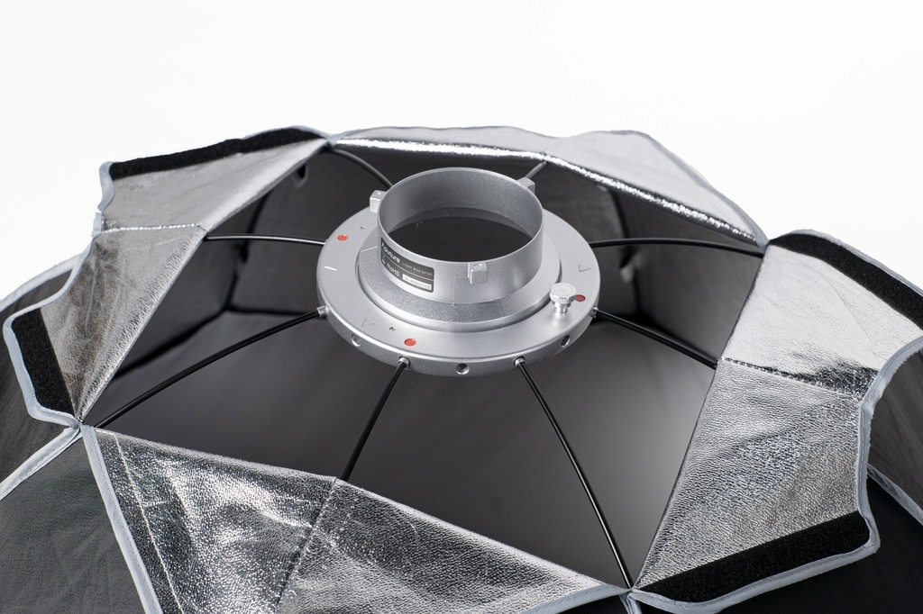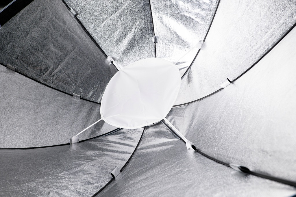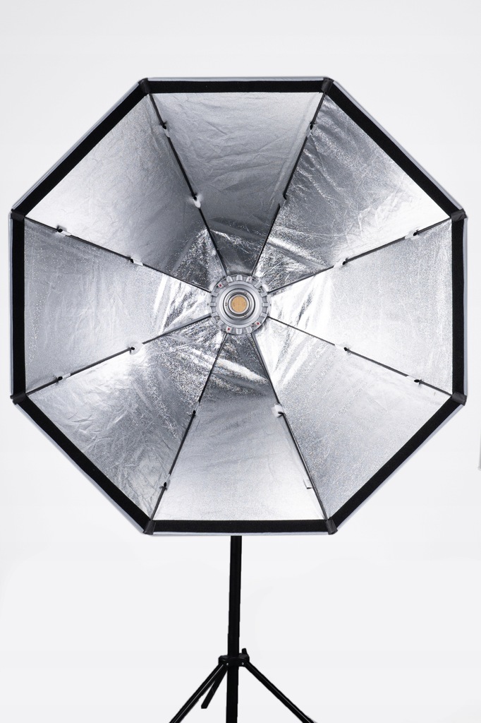 Liczba 120 w nazwie softboxa Octadome odnosi się do średnicy rozłożonego modyfikatora wynoszącej 120 cm. Z jego pomocą skutecznie otulisz plan zdjęciowy miękkim i rozproszonym światłem. Zastosowanie srebrnego materiału wewnątrz kopuły zapewnia bardzo dobre odbicie, które minimalizuje straty światła.