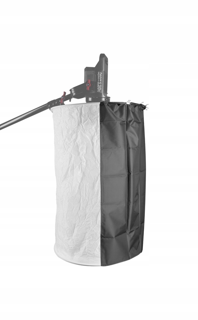- Łatwe Montowanie i Regulacja: Softbox mocuje się na skierowanej w dół lampie za pomocą ściągacza, a wysokość cylindra można dowolnie skracać przy użyciu załączonych klipsów.