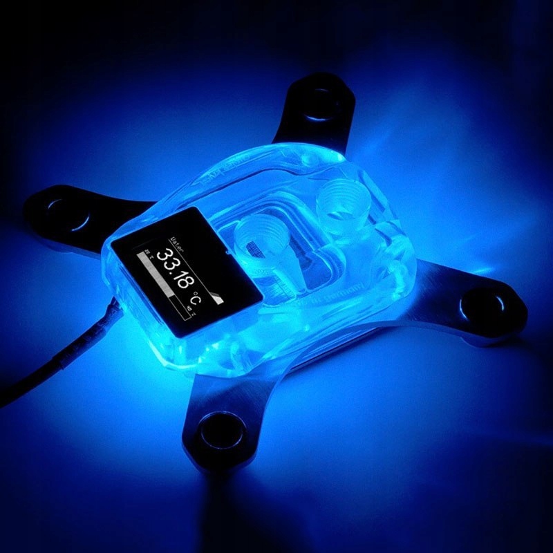 Szczególną cechą tego modelu Cuplex KRYOS NEXT chłodnicą stanu techniki sztuki wizyjne, które opiera się na czujnik temperatury czynnika chłodzącego, jak również jego własny mikroprocesor do sterowania zintegrowanej w chłodnicy obudowa OLED wyświetlacz graficzny ma rozdzielczość 128 x 64 pikseli, a wyświetlać tam użyteczne informacje.
