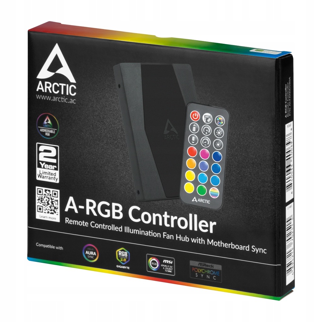 Arctic to szwajcarski producent komponentów do chłodzenia komputera. Od 2010r. Arctic rozszerzył swoją działalność, uruchamiając gamę produktów, które zaspokajają inne potrzeby konsumentów poza sprzętem chłodzącym komputer. Przedstawiamy kontroler A-RGB z pilotem radiowym. A-RGB dla w pełni konfigurowalnego oświetlenia, Sygnał PWM dostosowuje prędkość wentylatora.