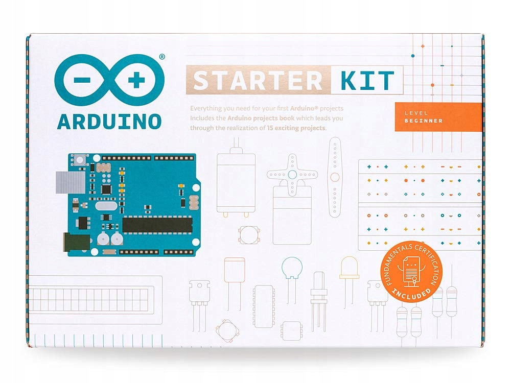 - punkt znaku wypunktowania: Świetna okazja: zdobądź pełny zestaw startowy Arduino oraz egzamin Fundamentals Certification (kod aktywacyjny), Najlepiej sprzedający się zestaw startowy obejmuje: 15 projektów, 170-stronicowa książka projektowa, ponad 100 komponentów, Odpowiedni dla początkujących powyżej 16 lat - nie wymaga wcześniejszego doświadczenia w elektronice ani programowaniu!, Uzyskaj oficjalny certyfikat z Arduino Fundamentals - pokaż swoje doświadczenie w kluczowych obszarach i postępuj w edukacji i karierze., Pełnia bezpłatnych zajęć i materiałów dostępnych online, plus wiele inspirujących samouczków i filmów