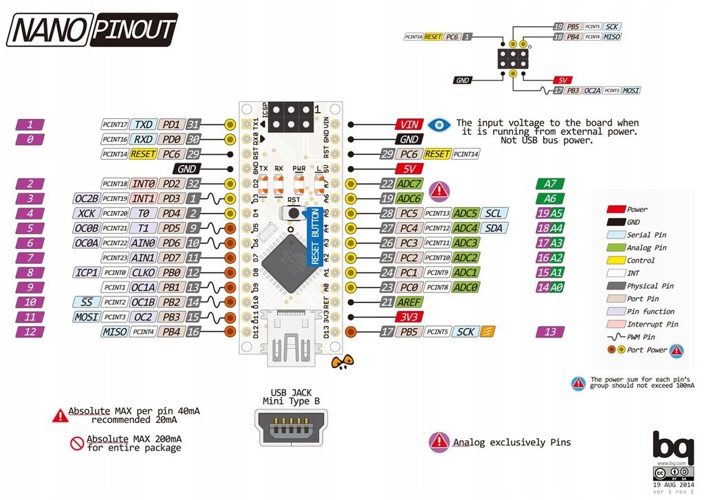 - Napięcie zasilania płytki: 5V lub max 12V na pin "VIN"