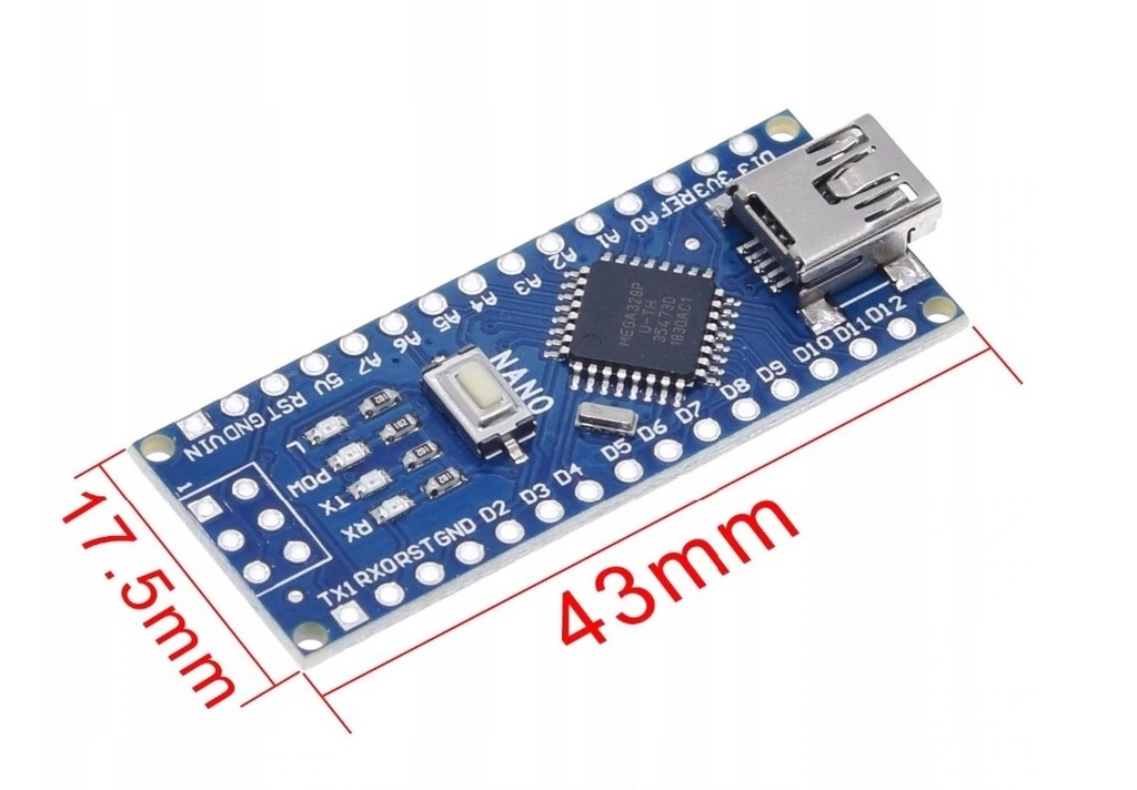 - Płytka wyposażona w mikrokontroler ATmega328 16MHz