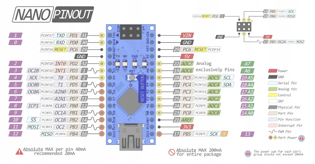 Arduino Nano ATMEGA328P 16MHz klon ze złączami