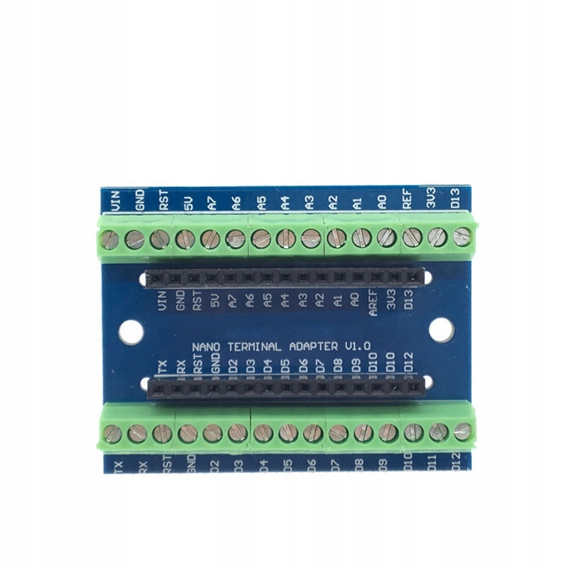 Terminal dedykowany do Arduino Nano. Umożliwia on łatwy dostęp do wyprowadzeń. Moduł posiada wyjścia ARK.