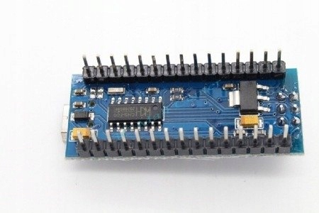 W Arduino zastosowano mikrokontroler Atmega328. Płytka posiada stabilizator napięcia, dzięki czemu można zasilić moduł z napięcia wyższego od 5V. NANO posiada programator CH340 do którego potrzebny jest dodatkowy sterownik.