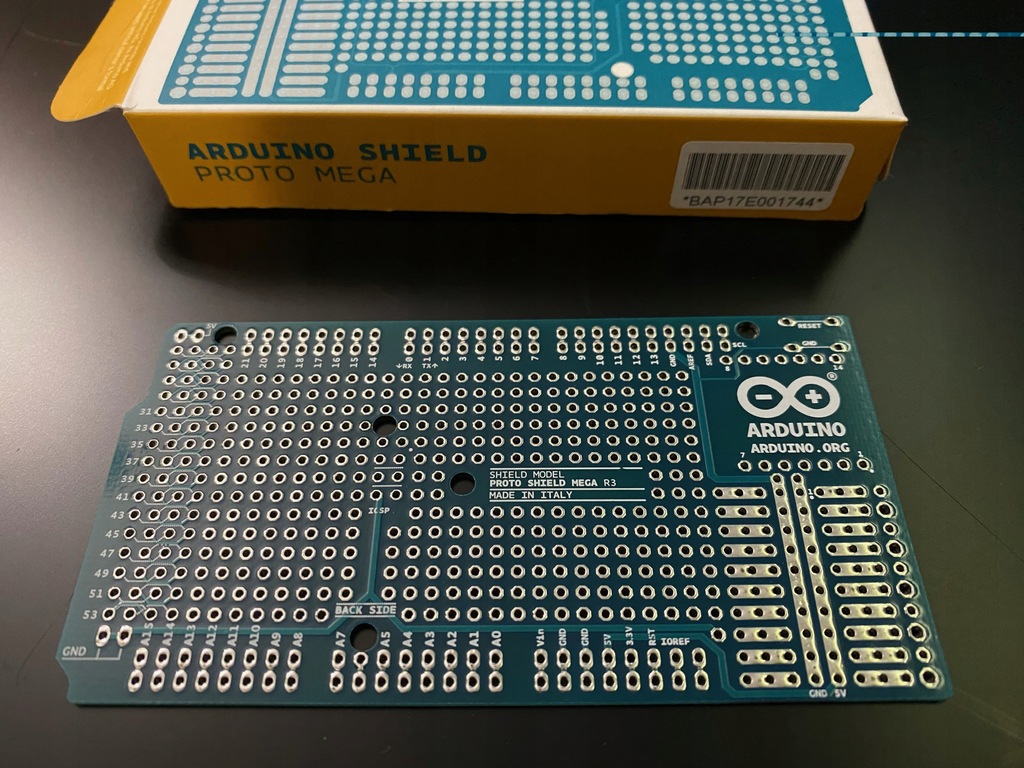 Nakładka na Arduino Mega pozwalająca tworzyć własne układy (shieldy). Model przystosowany do najnowszych wersji rodziny Arduino Mega Rev3.