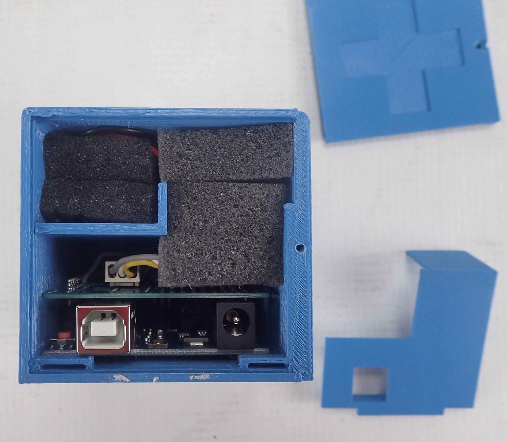 - jednostki centralnej w obudowie wykonanej na drukarce 3D z logo "Hydra" i ikoną człowieka, wraz z okablowaniem, wejściem na jack 2,5mm i porządnym włącznikiem z zielonym podświetleniem