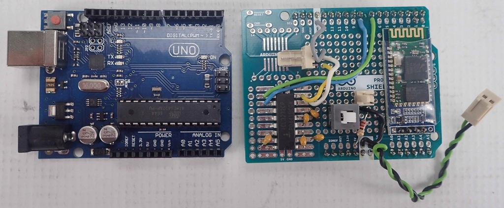 - modułu Bluetooth SLAVE HC-06 (chip BC417) zainstalowanego na Proto Shield