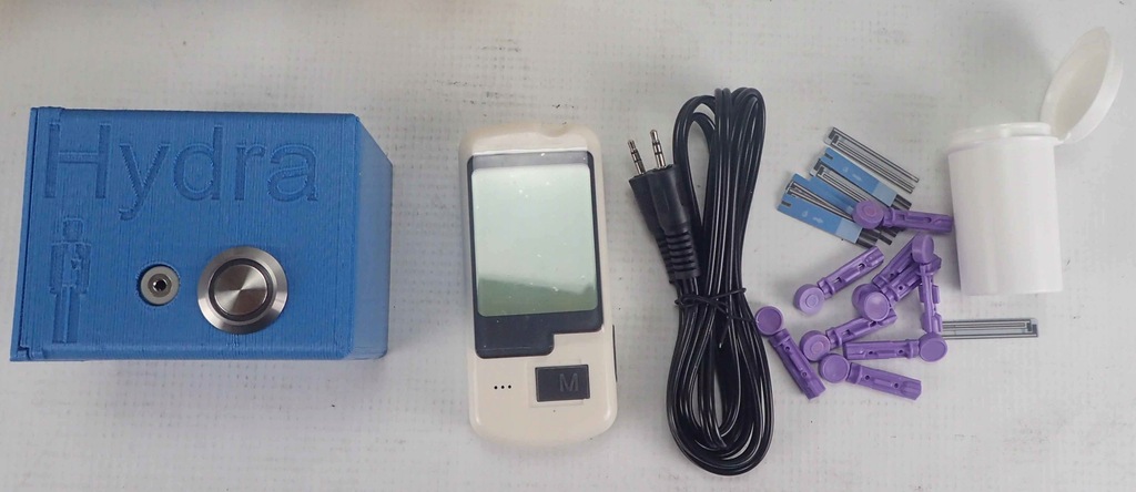 Sądzimy, że całość jest urządzeniem służącym do zdalnego przesyłania wyników pomiarów glukozy we krwi przez Bluetooth i np. jakąś aplikację. Jaka to apka i czy całość działa poprawnie - nie mamy możliwości weryfikacji.