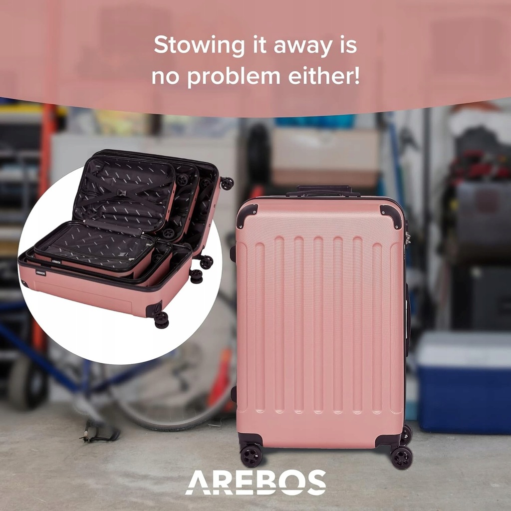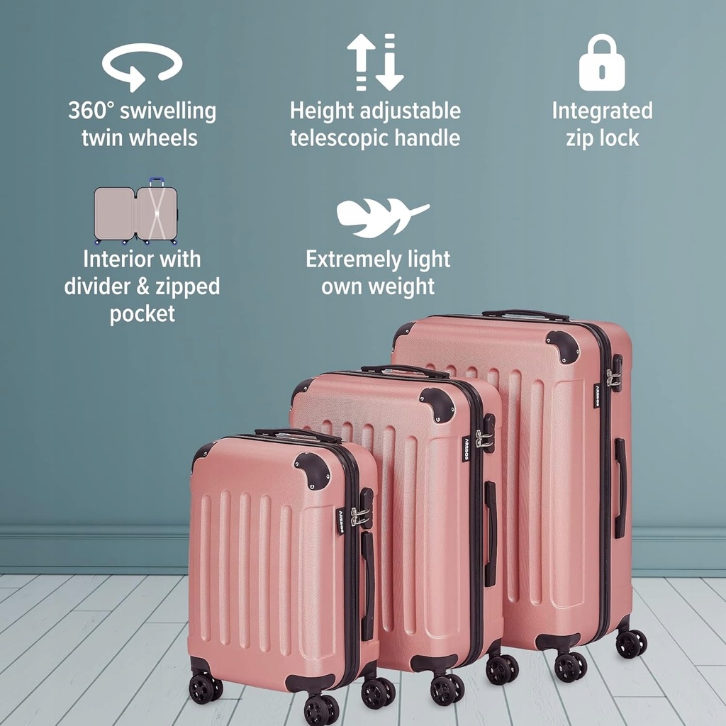 Arebos Zestaw 3 walizek podróżnych° Rożowe złoto walizki na kółkach 360 (15701590016)