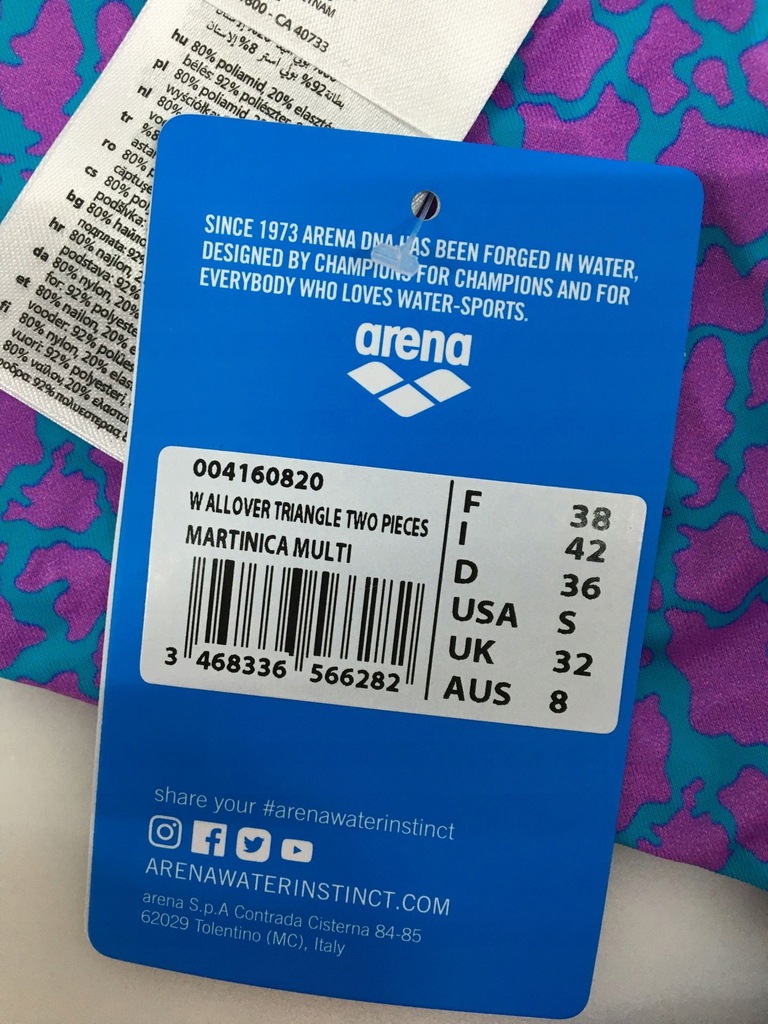 materiał arena MaxFit: odporny na chlor i słoną wodę, ochrona UV UPF 50+, szybkoschnący, doskonały komfort noszenia