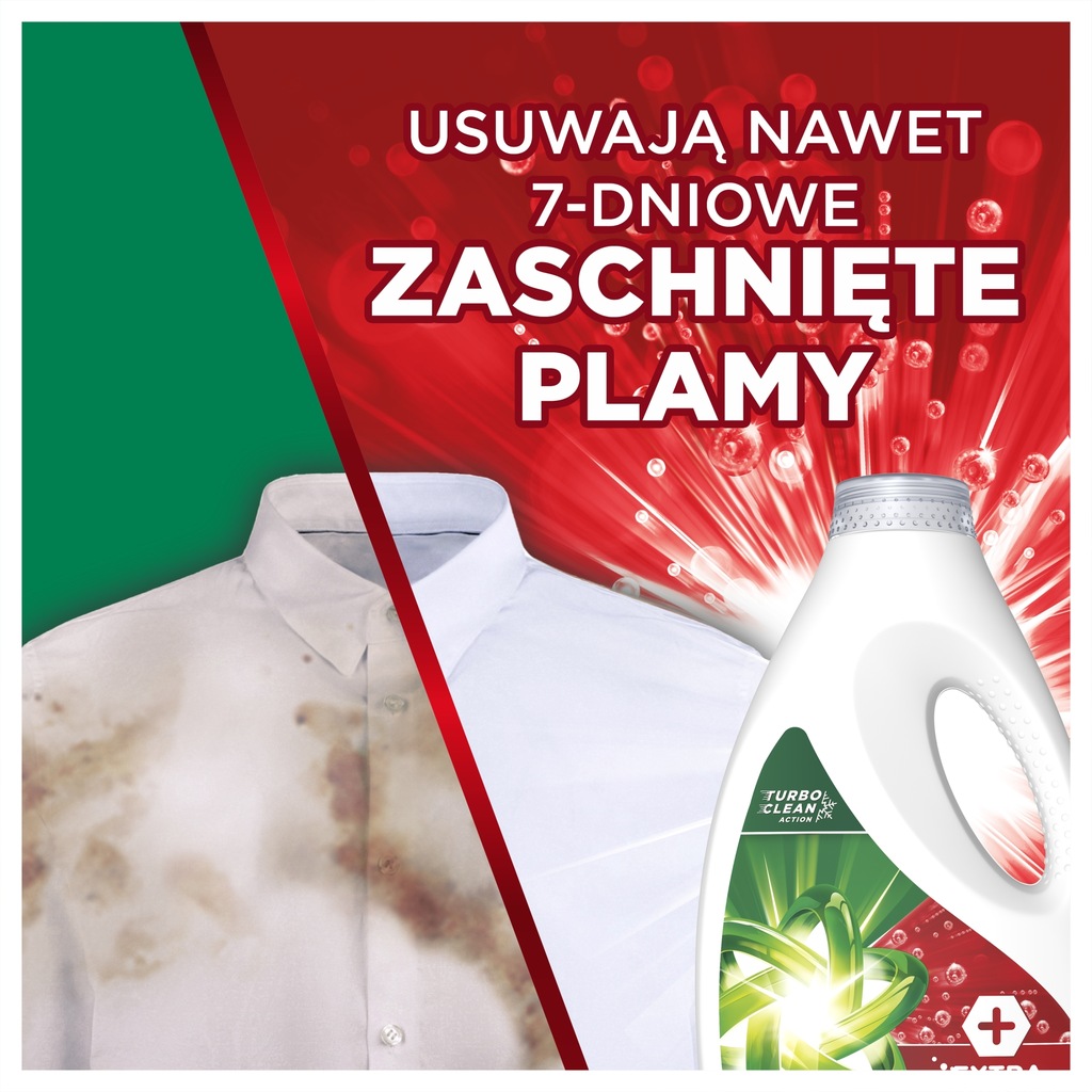 - Dodatkowe właściwości: Dogłębne czyszczenie + dodatkowa moc usuwania plam: Dodatkowa moc piorąca zapewniająca higienę (w porównaniu z płynem Ariel Mountain Spring)