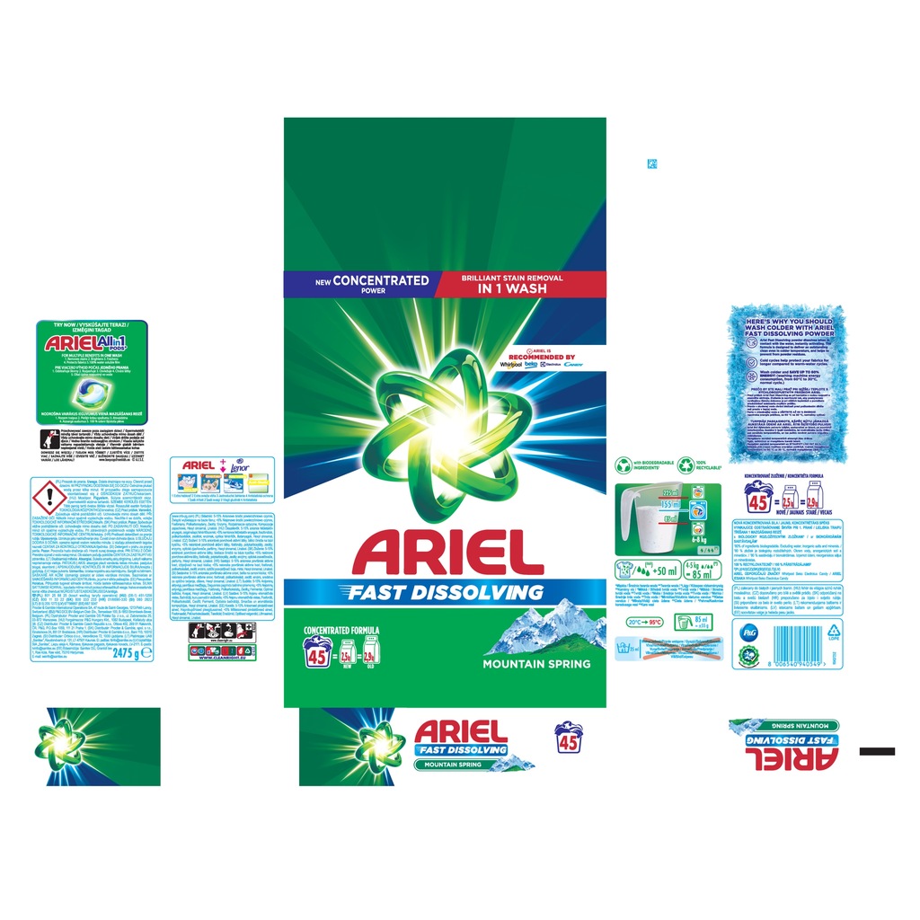Ariel fast dissolving mountain spring proszek do prania 45 prań 2475 g (15171018273)