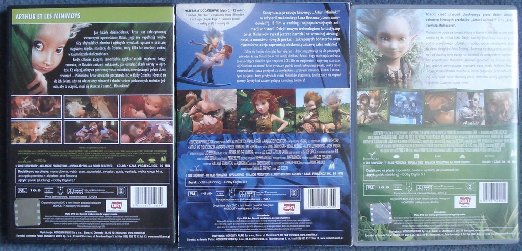 ARTUR i Minimki (1 DVD) Film o materiały dodatkowe: zapowiedzi, zwiastun, spoty, wywiady, wielka księga kina, uroczysta premiera z udziałem Luca Bessona, stan: jak nowy