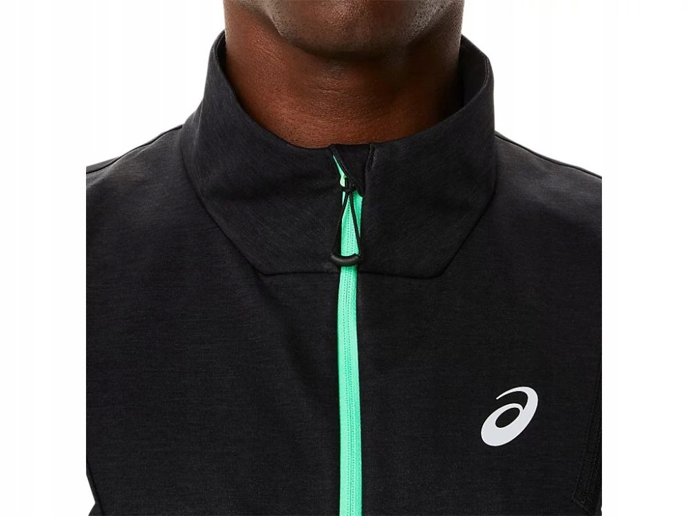Ta męska kamizelka biegowa Asics została wykonana z miękkiej trójwarstwowej tkaniny typu softshell. Z przodu bezrękawnika zastosowano szczotkowaną podszewkę, która świetnie zatrzymuje ciepło. Takie połączenie materiałów zagwarantuje odpowiedni komfort termiczny podczas biegania w chłodniejsze dni. Ponad to kamizelka została wyposażona w wyższy, miękki i szybkoschnący kołnierz, który zabezpieczy szyję przed zimnem.