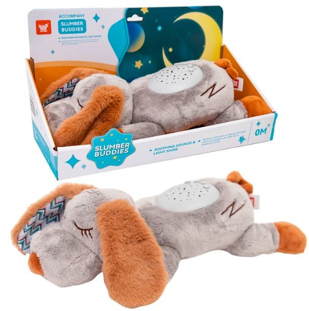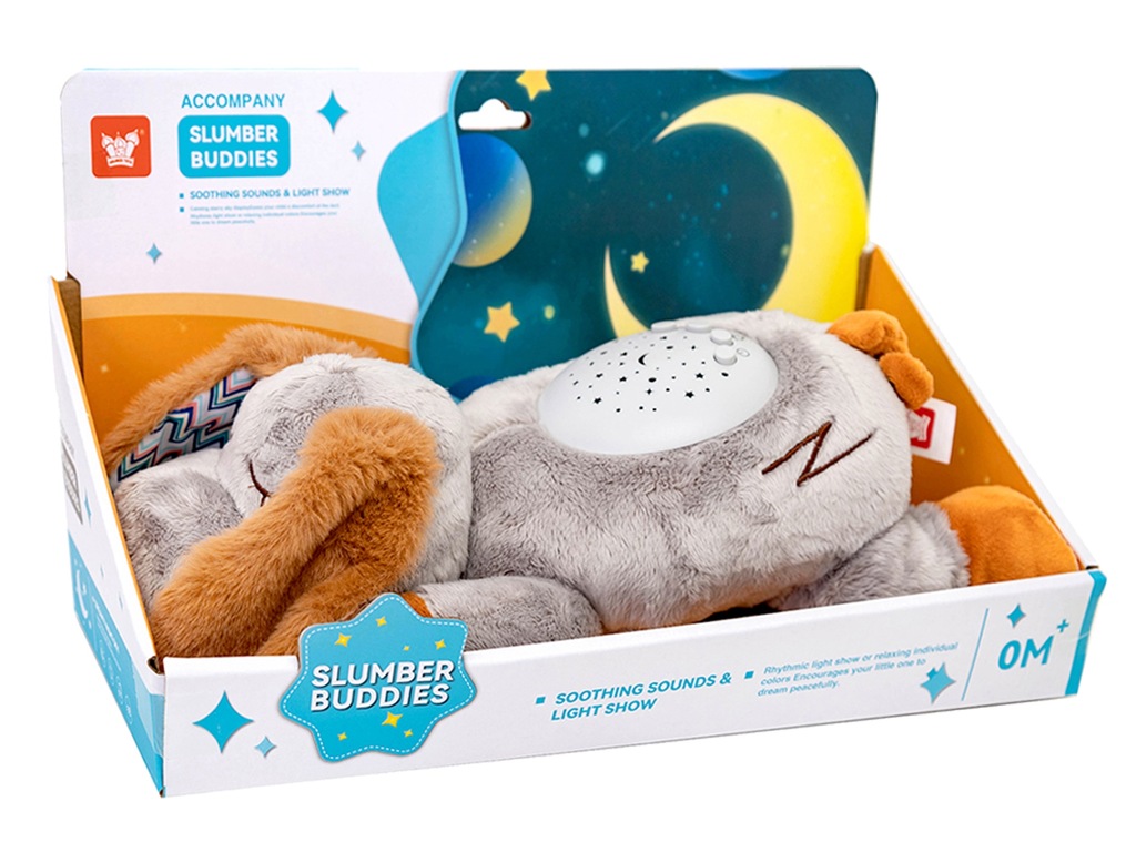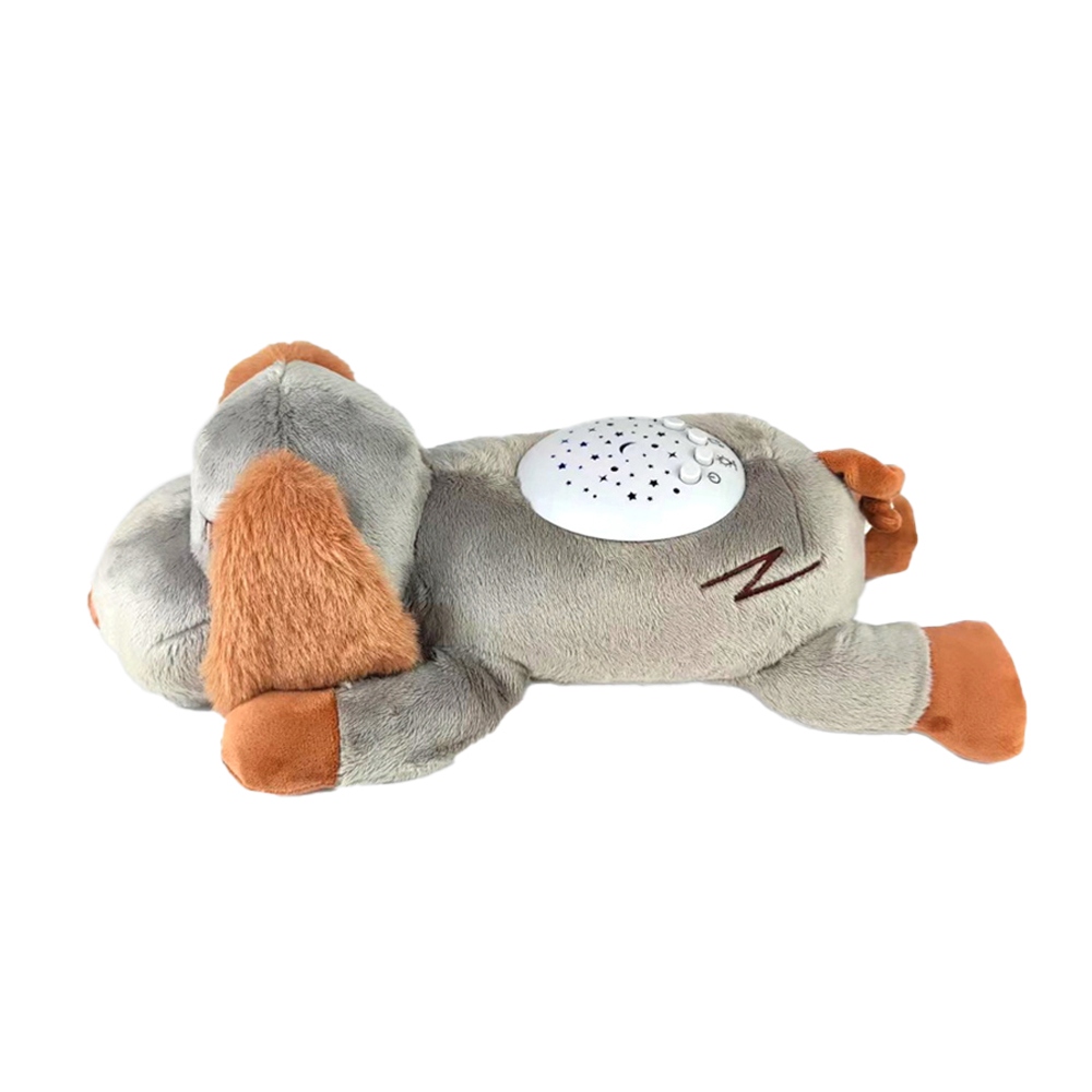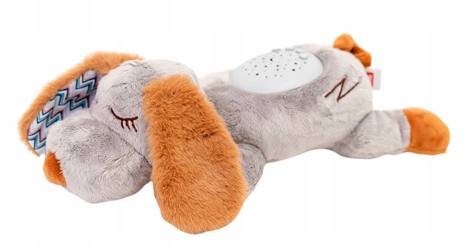 Projektor muzyczny - piesek. Delikatne dźwięki muzyki, które można zmienić na szum fal. Kolorowy projektor, który wyświetla gwiazdki na ścianany lub sufit.