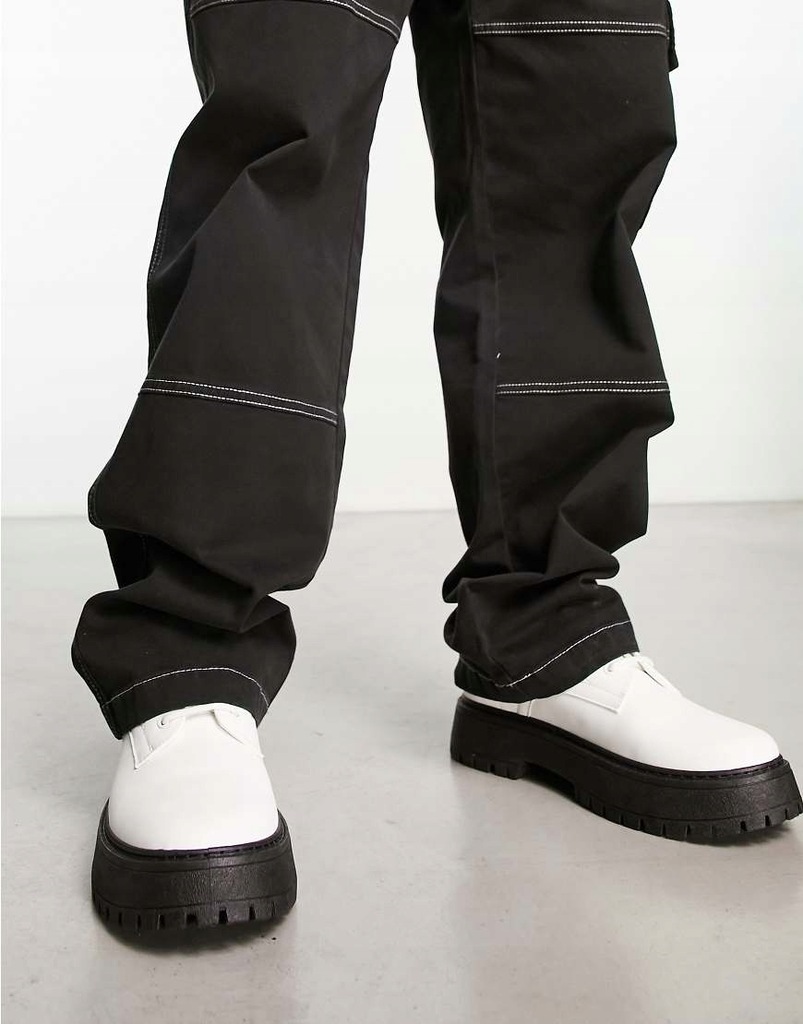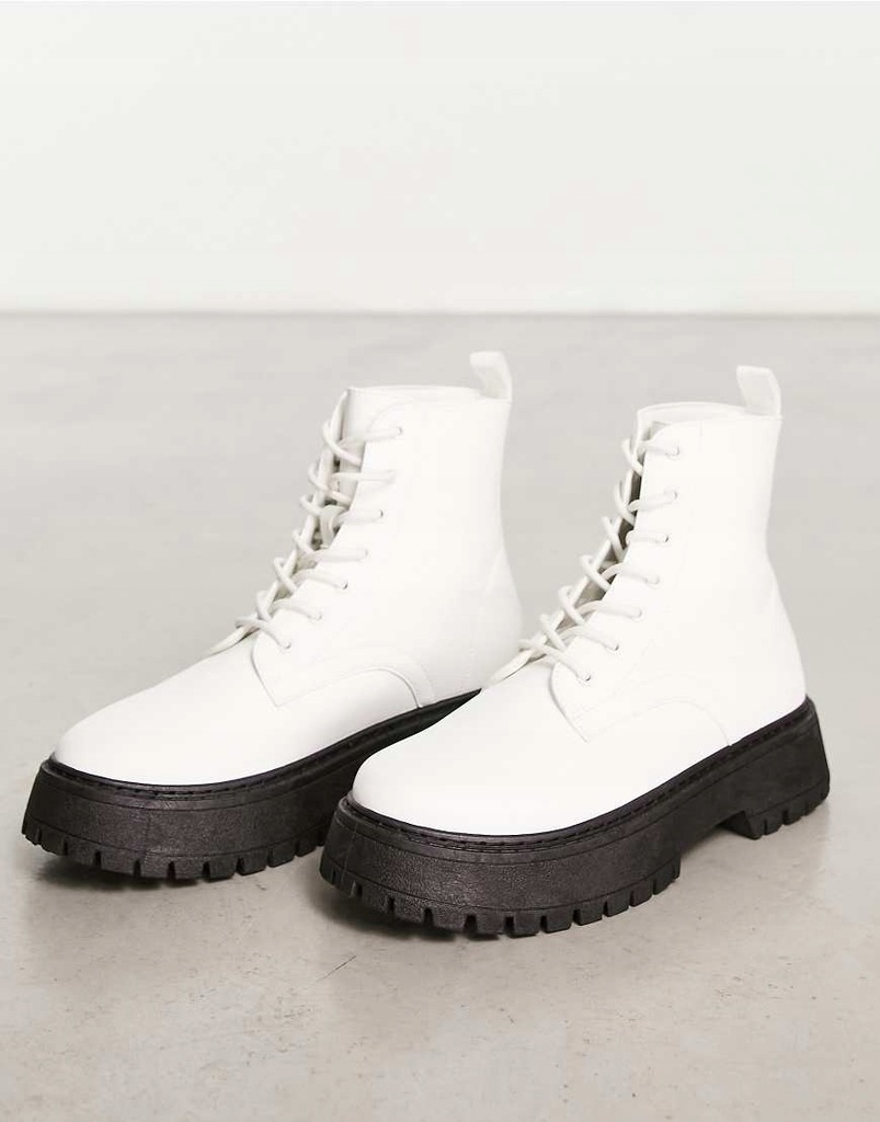 Asos Białe sznurowane botki z imitacji skóry na masywnej podeszwie 42,5