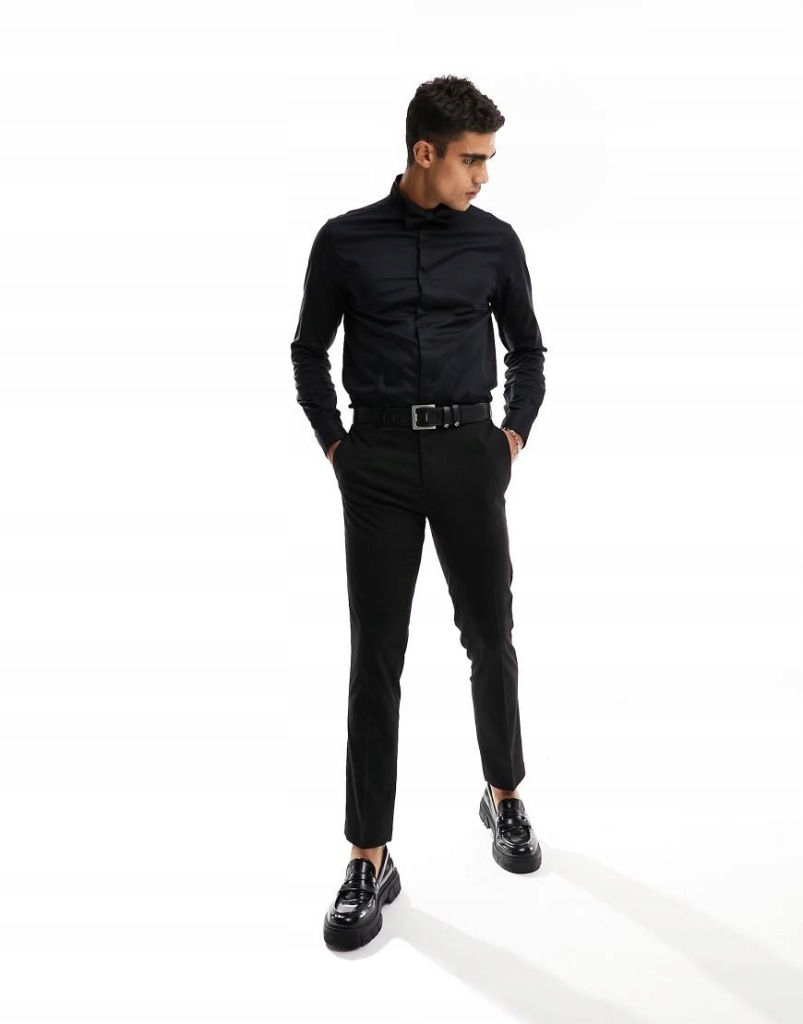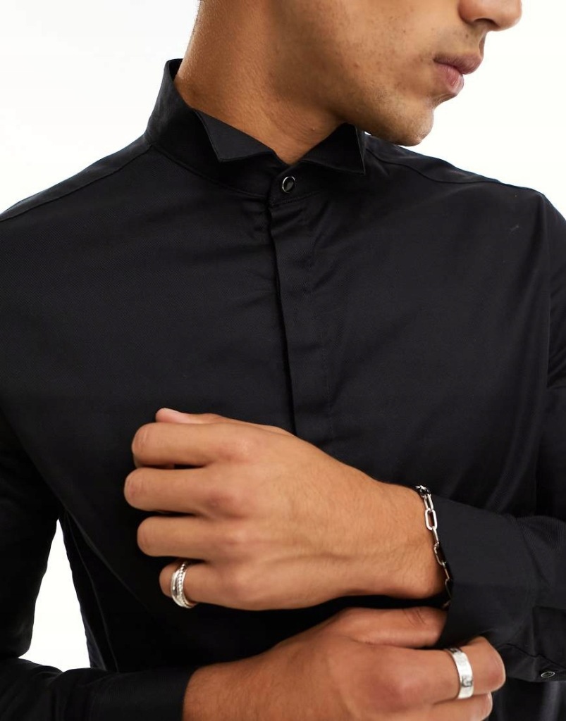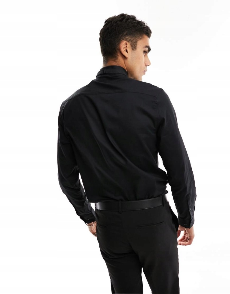 Asos Czarna elegancka koszula oxford z łamanym kołnierzykiem M