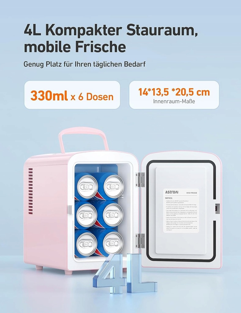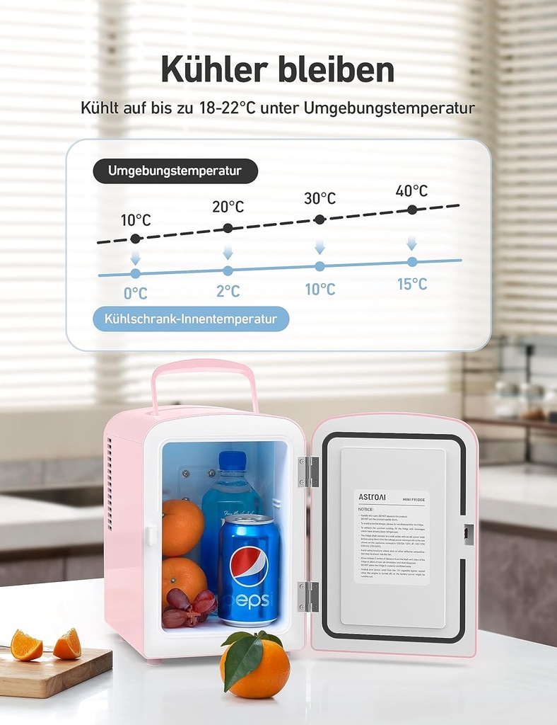 AstroAI Mini lodówka 2 w 1, chłodzenie i grzanie 4 litry pojemności