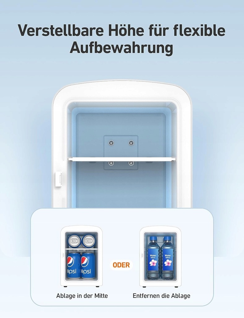 - 【Kompaktowa i przenośna】 W małej lodówce z łatwością zmieści się 6 puszek (330 ml). To urządzenie ma wymiary: 24 * 17,5 * 25,5 cm. Wyjmowana półka ułatwia oddzielenie drobnych produktów, takich jak jogurt, owoce, mleko czy sok.
