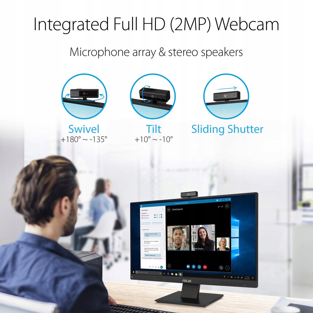 Odwiedź sklep Odwiedź sklep Odwiedź sklep Odwiedź sklep ASUS jest jedną z „Najbardziej podziwianych firm na świecie” magazynu Fortune i jedną z wiodących na świecie marek płyt głównych i gier, a także jednym z trzech największych dostawców notebooków dla konsumentów. Firma ASUS angażuje się w opracowywanie wysokiej jakości produktów zapewniających inteligentne życie przyszłości, projektując i wytwarzając produkty idealnie dostosowane do potrzeb współczesnych cyfrowych użytkowników domowych, biurowych i prywatnych. BE24EQK współpracuje z rozdzielczością Full HD, zapewniając imponującą klarowność. Panel IPS oferuje kąt widzenia 178° – zarówno w poziomie, jak i w pionie – dzięki czemu możesz cieszyć się wysoką jakością obrazu z niemal każdego kierunku. Układ mikrofonów BE24EQK wykorzystuje technologię kształtowania wiązki i oddziela informacje głosowe od szumu tła. Dzięki temu idealnie nadaje się do odpowiednich zastosowań. Inteligentna eliminacja echa dodatkowo poprawia zrozumiałość mowy. Dzięki temu monitor jest idealnym wyborem do transmisji strumieniowych, seminariów internetowych lub e-learningu za pośrednictwem komunikacji głosowej. Dzięki zintegrowanej kamerze internetowej Full HD o rozdzielczości 2 MP model BE24EQK idealnie nadaje się do prowadzenia wideokonferencji w Internecie i transmisji na żywo. Regulowany obiektyw kamery internetowej można z łatwością obracać o 315° i przechylać o 10° w obu kierunkach, dzięki czemu zawsze znajdziesz idealną pozycję do nagrywania. Zintegrowane głośniki stereo zapewniają głośne i wyraźne odtwarzanie dźwięku. Kamera internetowa jest również wyposażona w przesuwaną przesłonę, która chroni prywatność, gdy kamera nie jest używana. Ekskluzywny filtr niebieskiego światła ASUS chroni Cię przed szkodliwym niebieskim światłem. Posiada cztery różne ustawienia filtrów, do których można uzyskać dostęp za pomocą klawisza skrótu. Zmęczone i napięte oczy należą już do przeszłości. Technologia Flicker-Free redukuje migotanie ekranu i zapewnia szczególnie przyjemne środowisko odpowiednie do maratonów filmowych. Został zaprojektowany, aby zminimalizować zmęczenie oczu, bóle głowy i zmęczenie oczu – objawy, które mogą wystąpić po niezliczonej liczbie godzin przed ekranem. BE24EQK obsługuje ekskluzywną technologię ASUS Splendid, która optymalizuje jakość obrazu poprzez analizę poszczególnych pikseli pełnego obrazu. W ten sposób można optymalnie dostosować jasność, kontrast, ostrość obrazu i kolory. Do wyboru jest wiele gotowych trybów — w tym czytanie, ciemnia, krajobraz, standardowy, kino, sRGB, gry i tryb nocny.