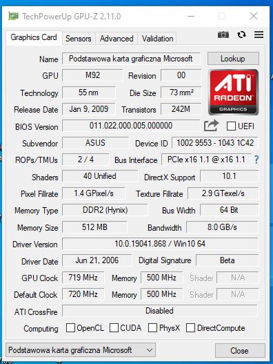 Zapraszam do zakupu karty graficznej z laptopa Asus K70AF HD5145 z 512MB pamięci własnej.