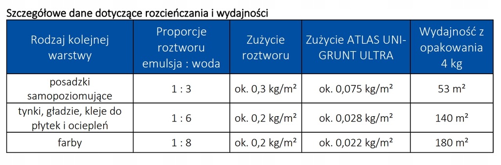 ultra wydajność - jedno opakowanie 4 kg ATLAS UNI-GRUNT ULTRA wystarczy na zagruntowanie: