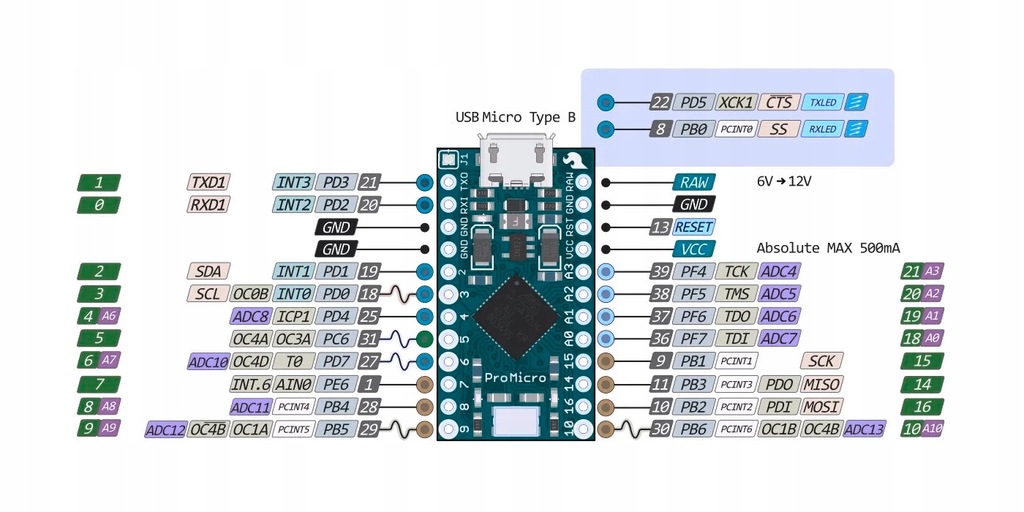 - NAZWA: ATmega32U4 microUSB zgodna z Arduino IDE, format Leonardo PRO-compatible