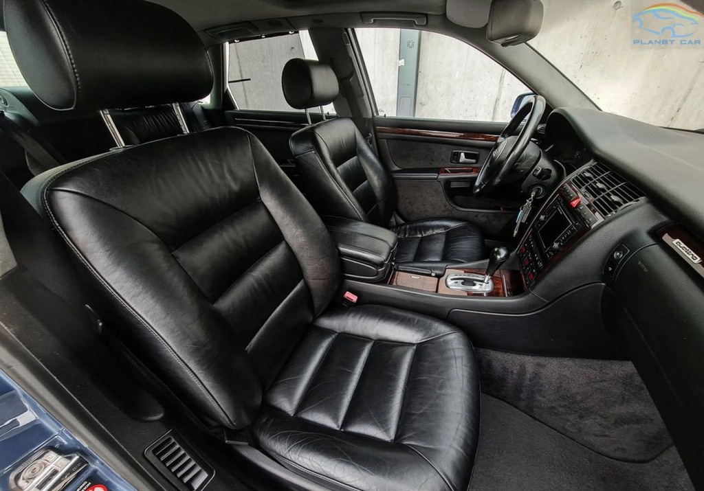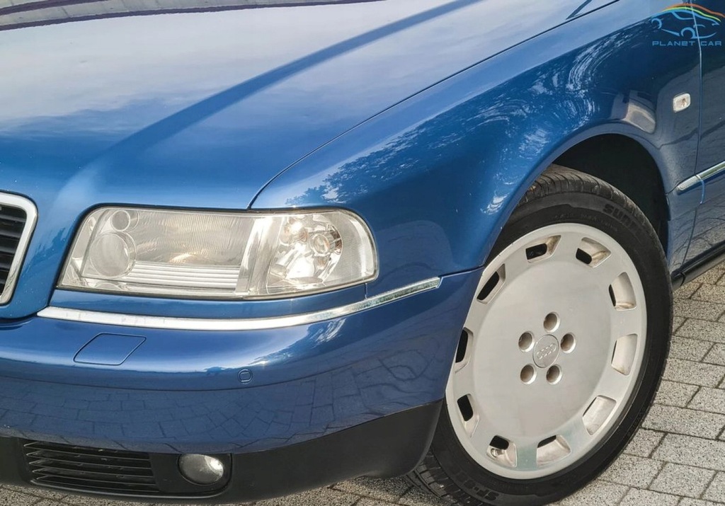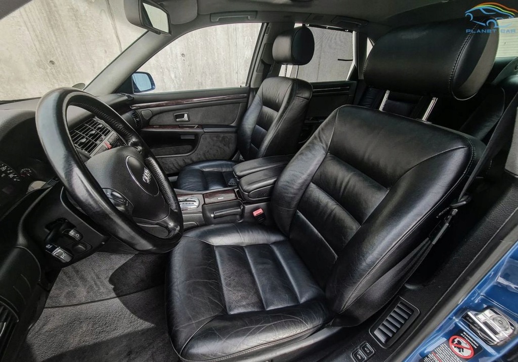 Audi bezwypadkowe z oryginalnym i udokumentowanym przebiegiem. Cały samochód posiada oryginalną warstwę lakieru. Audi w pięknym niebieskim kolorze z pięknymi polerowanymi felgami. Tapicerka skórzana w bardzo dobrym stanie. A8 w bardzo dobrej wersji wyposażenia między innymi: szyberdach, nawigacja, elektrycznie ustawiane fotele, fotel kierowcy z pamięcią ustawień, elektrycznie ustawiana kolumna kierownicza, podgrzewane fotele przód-tył, elektryczna roleta tylnej szyby, rolety tylnych szyb, czujniki parkowania przód-tył i wiele więcej. Zapraszamy na oględziny i jazdę próbną.