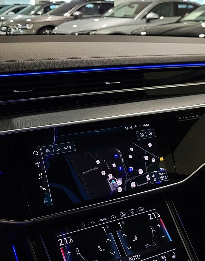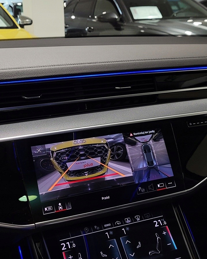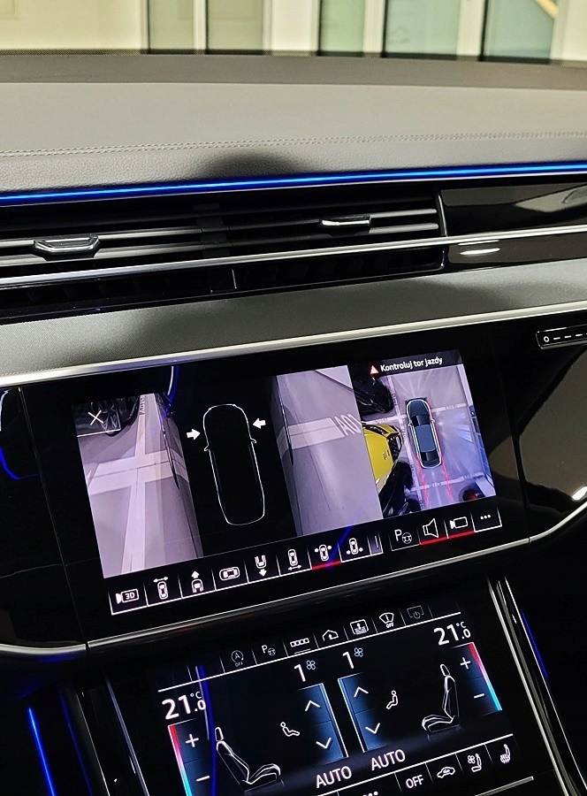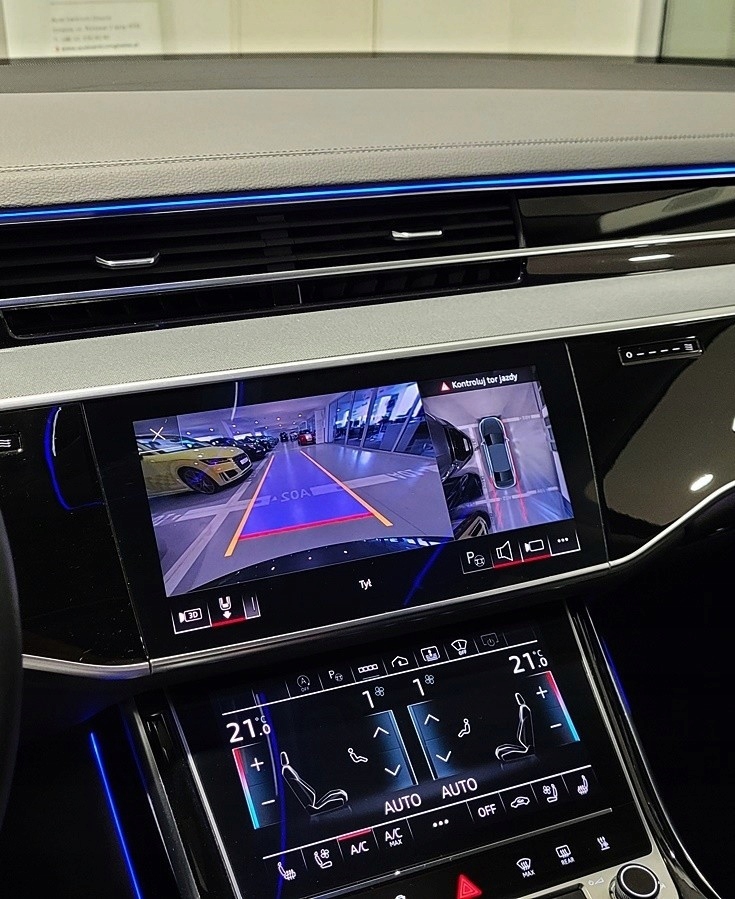 Czujniki parkowania przód oraz tył z wizualizacja na ekranie MMI