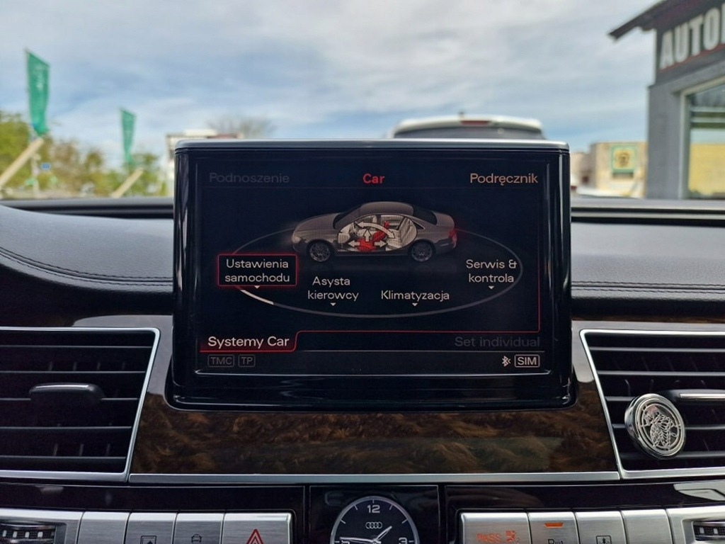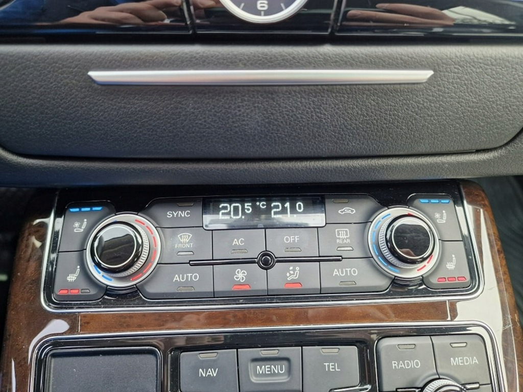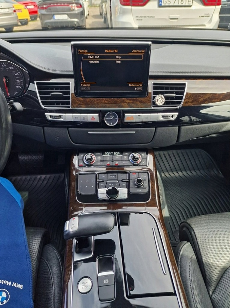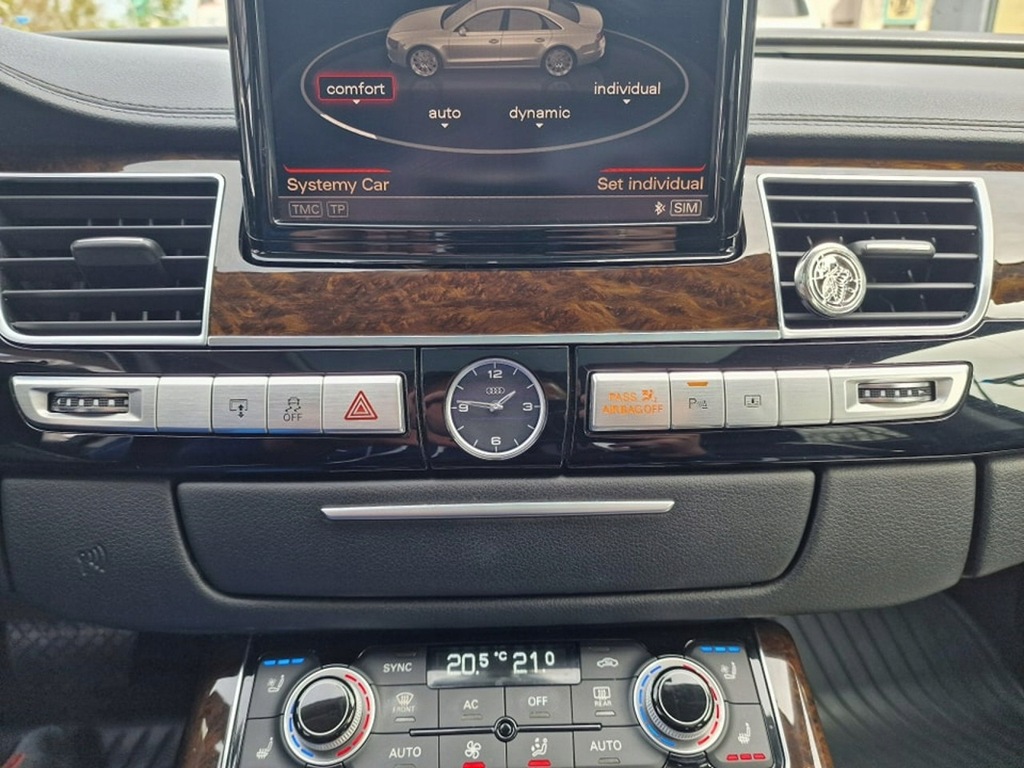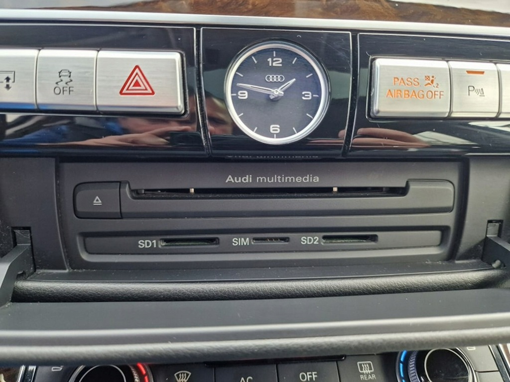 Elektryczne szyby przód I tył, elektryczne lusterka, wspomaganie kierownicy, wielofunkcyjna skórzana kierownica, komputer pokładowy, tempomat, ogranicznik prędkości, radio CD mp3 z AUX I USB, Bluetooth, nawigacja, menu w języku Polskim, kamera cofania, elektrycznie sterowane fotele przednie z funkcją masażu, podgrzewane fotele przednie, skórzana tapicerka, drewniane wykończenie, automatyczna skrzynia biegów, łopatki do zmiany biegów przy kierownicy, kolumna kierownicy sterowane elektrycznie, rolety na tylnych szybach sterowane elektrycznie, wersja Long (przedłużona), szyberdach, poduszki powietrzne przednie I boczne, kurtyny powietrzne, isofix, ABS, ESP, kontrola trakcji, napęd 4x4 Quattro, lakier metaliczny, alufelgi, światła do jazdy dziennej LED, reflektory Bi-Xenon, przyciemniane szyby, czujnik parkowania przód I tył, czujnik zmierzchu, czujnik deszczu, nagłośnienie Bose, elektrycznie sterowana tylna kanapa, zmieniarka CD, dociąganie drzwi, centralny zamek z pilotem, klucz zbliżeniowy.