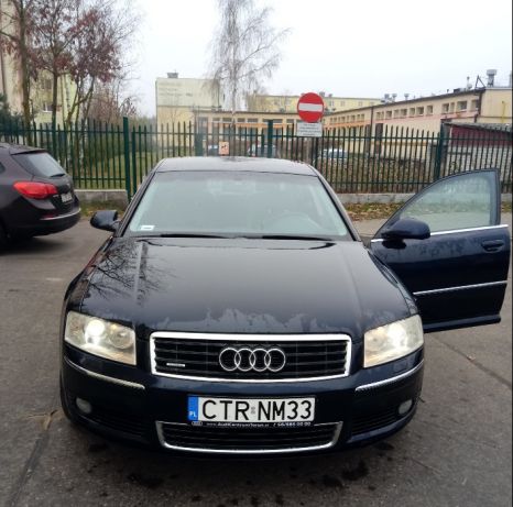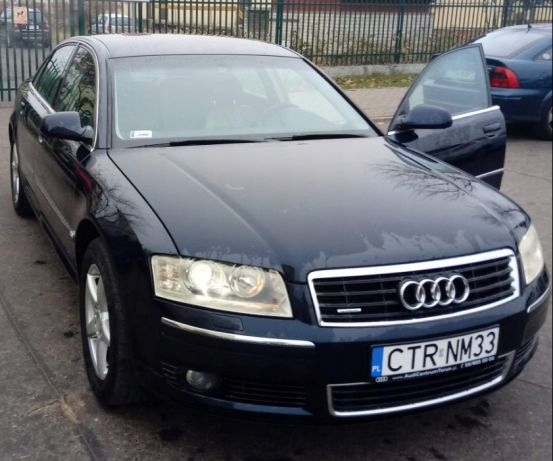 Sprzedam bardzo ładne audi A8 D3 3.7benzyna Quatro. Auto ma świeżo wymieniony rozrzad komplet z pompą wody. Nowe klocki TRW.Nowe cztery dolne Wahacze.Nowe złącze elastyczne tłumika Wymieniony Alternator. Nowa poduszka Amortyzatora Pneumatyka trzyma ładnie nie opada .Lakier w bardzo dobrej kondycji. Silnik pali od przysłowiowego strzała przez rok użytkownika nigdy mnie nie zawiódł auto wiekszosc czasu stoi pracuje na wyjazdach po tygodniowych przerwach nie ma problemu z odpalaniem pali i jedzie auto ma wiadomo swoje lata nie jest to nowe aczkolwiek warte uwagi. Spalanie Trasa 8l predkosc kolo 130-140 . Miasto wiadomo ze wiecej 11 przy normalnej jezdzie jak sie szarpie to i wiecej .Wiecej informacji pod numerem tel 667-166-272