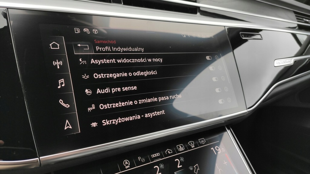 Audi Virtual Cockpit Plus – w pełni cyfrowy zestaw wskaźników z możliwością personalizacjiBang & Olufsen Premium Sound System z dźwiękiem 3D – koncertowa jakość dźwiękuCyfrowe reflektory Matrix LED z funkcją HD Matrix – inteligentne oświetlenie drogiSystem rozpoznawania znaków drogowych współpracujący z kamerą – zwiększone bezpieczeństwo na drodzeAdaptacyjny tempomat z ogranicznikiem prędkości, asystentem wydajności, omijania przeszkód i skrętu – wsparcie podczas jazdyAudi Pre Sense Rear – system zapobiegania kolizjom z tyłuSystem kamer obserwujących otoczenie – pełny widok wokół pojazduAsystent parkowania z Audi Parking System Plus – ułatwienie parkowania w ciasnych miejscachAsystent jazdy nocnej – zwiększone bezpieczeństwo po zmrokuWyświetlacz Head-Up – ważne informacje wyświetlane na przedniej szybieDesign i funkcjonalność: