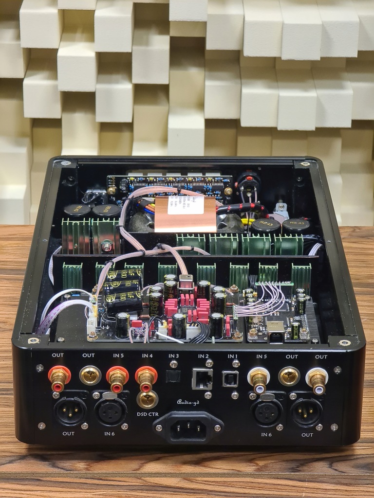 - zbalansowany, cyfrowo sterowany, pasywny, 64 lub 100 krokowy system sterowania wzmocnieniem, oparty na przekaźnikach i dzielnikach napięcia. Zastosowana technologia ma na celu zrównoważenie wzmocnienia każdego kanału, zmniejszenie wpływu na czystość reprodukcji dźwięku. Sterowanie za pomocą pulsatora(enkodera) lub pilota