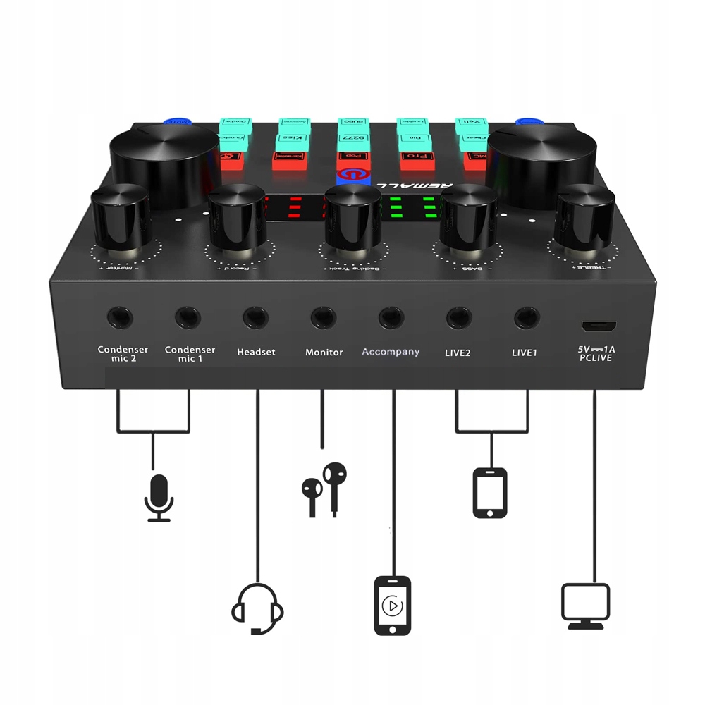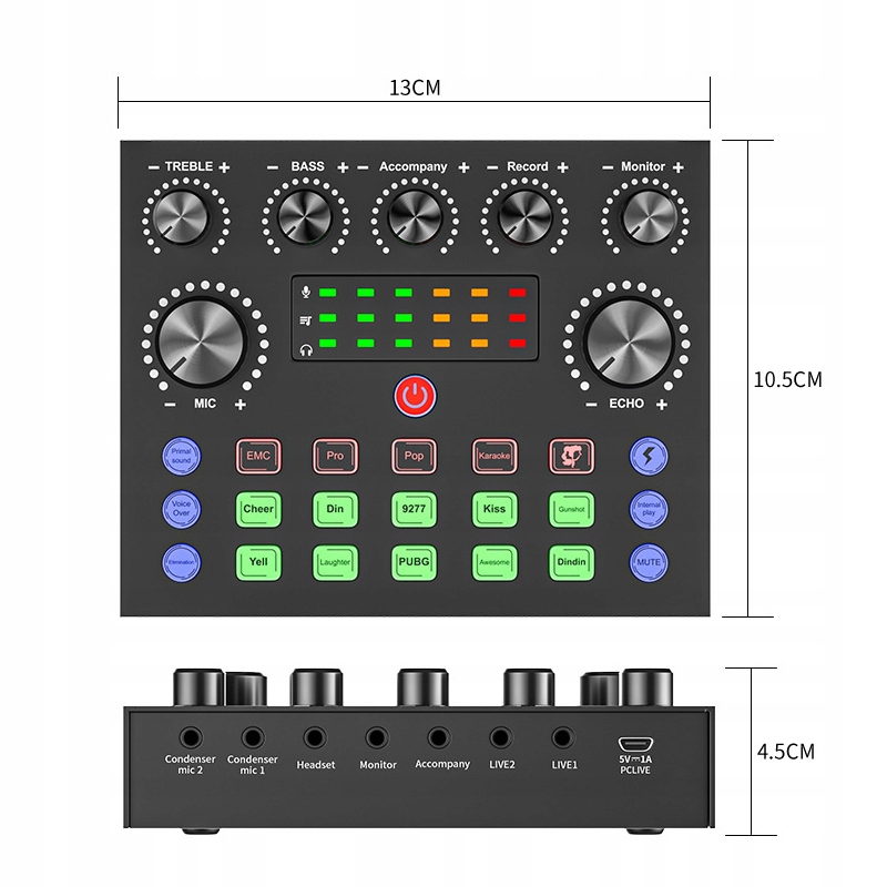 ✔️The sound card has various modes, such as professional mode, popular mode, single-key shouting, single-key electronic music, etc.