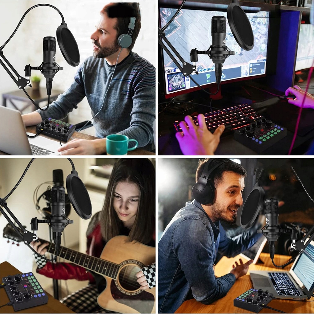 V8S Sound Card, Podcast Equipment,Audio Mixer For Streaming, Recording,Gaming,Broadcast