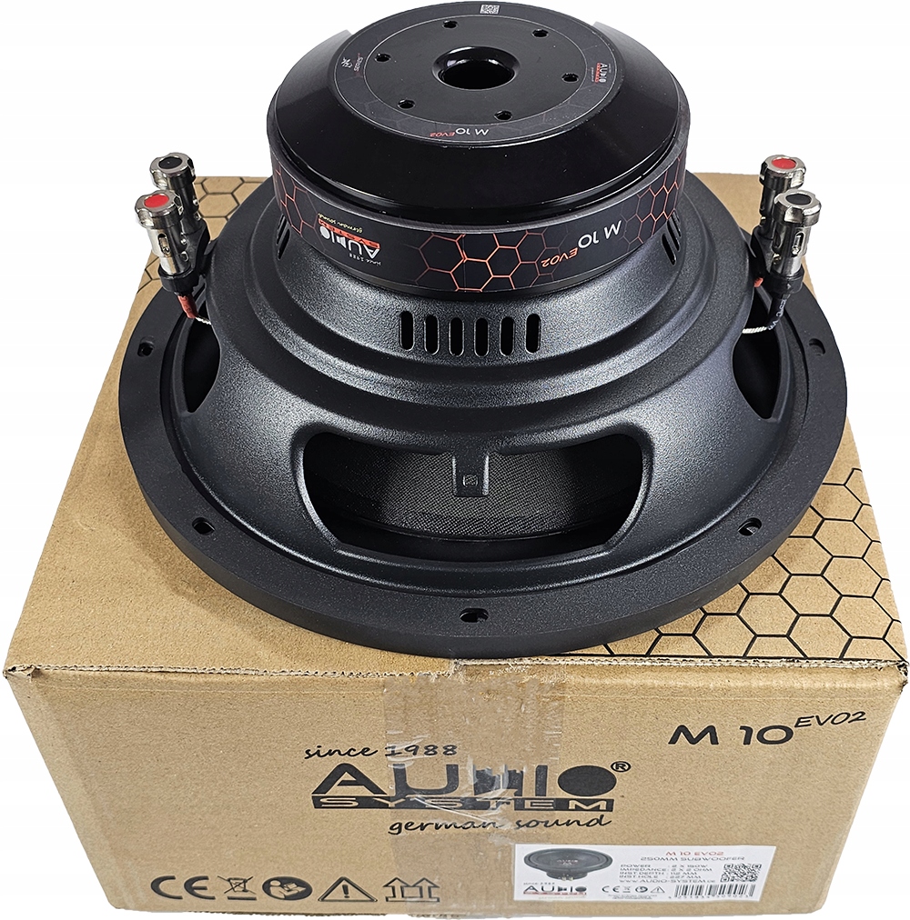 Audio System M10 EVO2 : dwucewkowy subwoofer 25cm dla wymagających, membrana ze szlachetnych naturalnych włókien na rusztowaniu wzmocnionym włóknem szklanym.