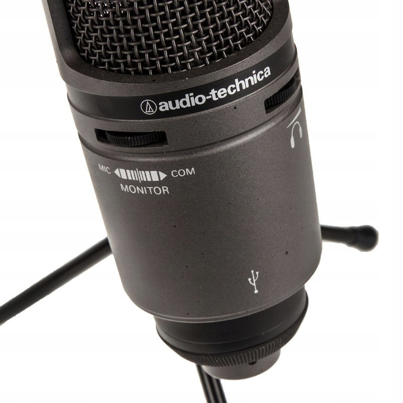 16-milimetrowa kapsuła skraplacza AT2020 USB jest zamknięta w solidnej metalowej ramie i wieloetapowym zabezpieczeniu przed wyskokiem. Charakterystyka kierunkowa w kształcie nerki sprawia, że nadaje się szczególnie do nagrywania pojedynczych głośników lub instrumentów. Z przodu znajdują się dwa regulatory głośności do sterowania monitorem i wyjściem słuchawkowym.