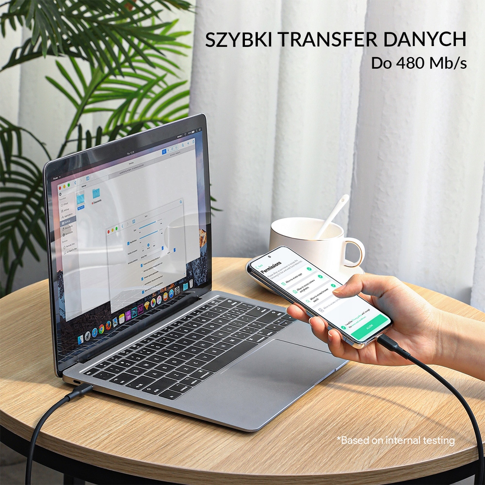 Oprócz szybkiego ładowania, kabel oferuje prędkość transferu danych do 480 Mbps, co umożliwia szybkie i bezproblemowe przesyłanie plików między urządzeniami. Jest to idealne rozwiązanie do sporadycznego przesyłania plików między urządzeniami.