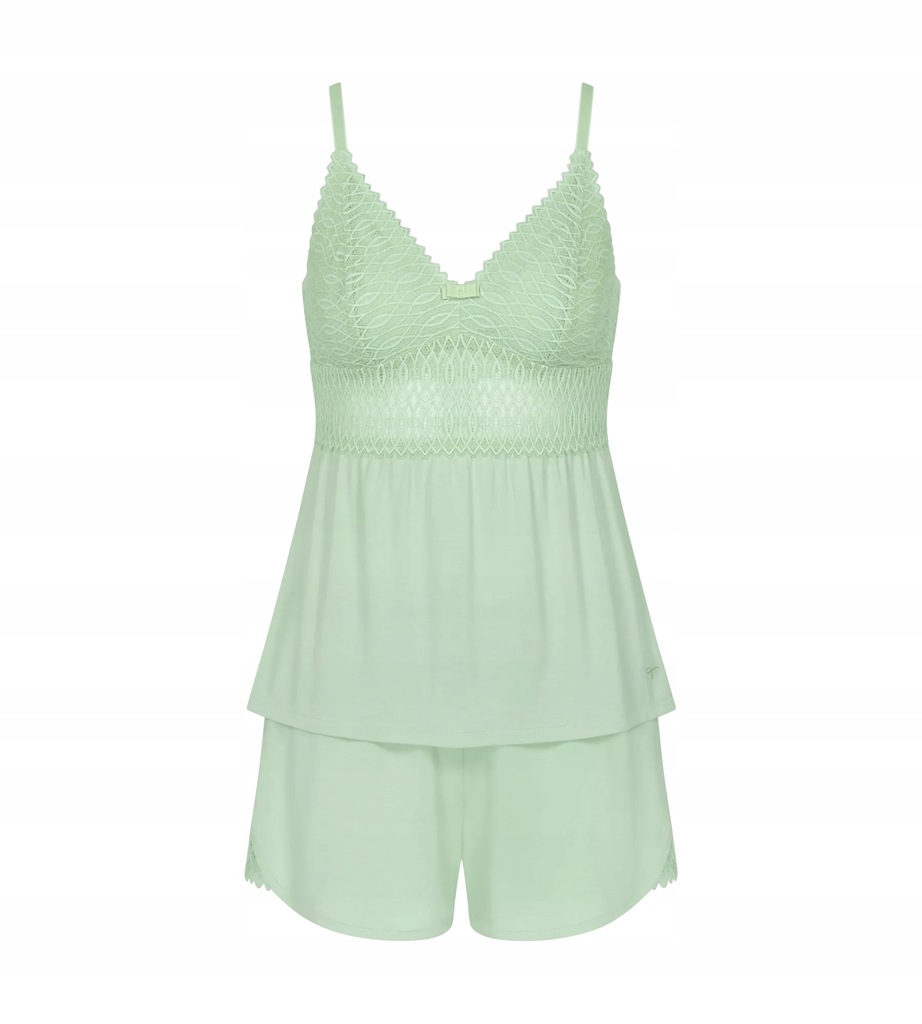 Dzięki tej uroczej bieliźnie nocnej wcześniej położysz się do łóżka. Model, łączący szorty z podkreślającą sylwetkę górą, zapewnia oddychalność dzięki koronkowym wycięciom.