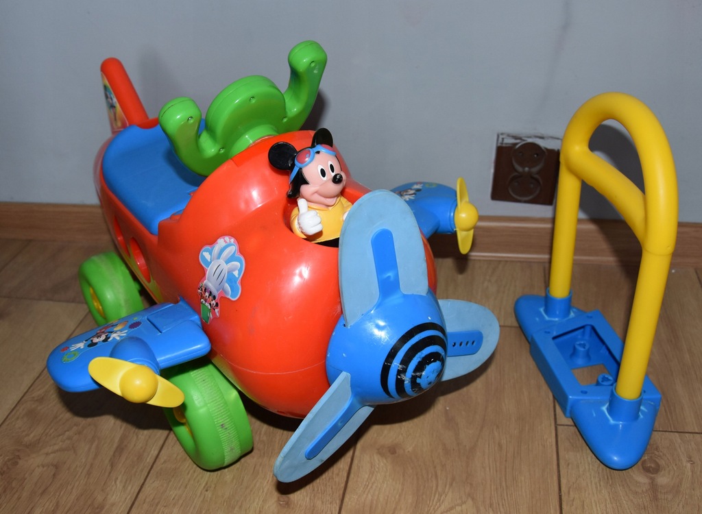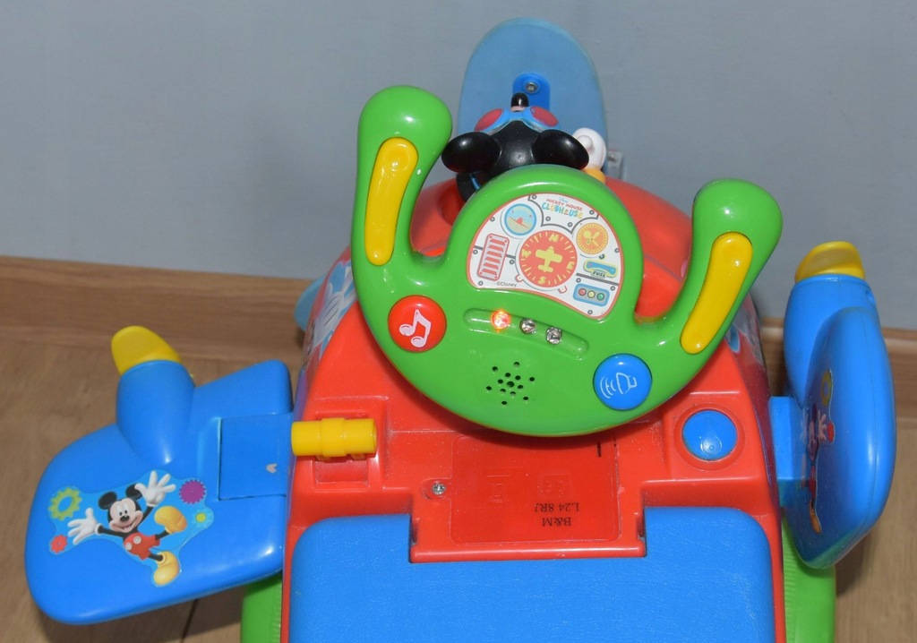 Zabawka z panelem interaktywnym – kierownicą. Przy kierownicy jest aż 6 aktywnych klawiszy, każdy działa w innym trybie. Zabawka śpiewa piosenki, mówi, wydaje różne dźwięki, odgłosy startowania samolotu, wydaje różne komendy typu „Witaj na pokładzie”, „Startujemy” i tak dalej. Zabawka w języku angielskim. Zabawka mówi oryginalnym językiem Myszki Miki z popularnej bajki „Klub Przyjaciół Myszki Miki”. Podczas zabawy świecą się światełka na kierownicy.