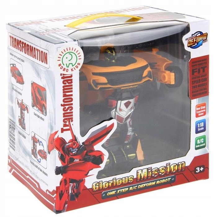 Idealny wybór dla każdego chłopca, który ucieszy się z dwóch zabawek w jednej. Możemy bawić się zarówno postacią super robota, jak i imitacją sportowego samochodu! Zabawką możemy jeździć w każdym kierunku oraz za pomocą jednego przycisku zmieniać formę z super auta na potężnego robota znanego dzieciom z bajek i filmów!