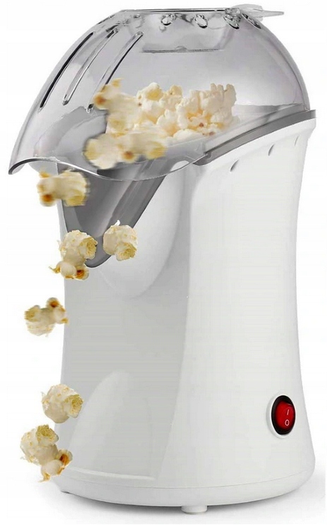 ŁATWA OBSŁUGADzięki łatwej obsłudze, prażoną kukurydzę przygotujesz już w kilka minut! Wystarczy zdjąć pokrywę, nasypać odpowiednią ilość ziaren, po nałożeniu pokrywy wcisnąć przycisk On i już po 2-4 minutach cieszyć się smakiem świeżo prażonego popcornu. Nie zapomnij podstawić miski pod wylot urządzenia.