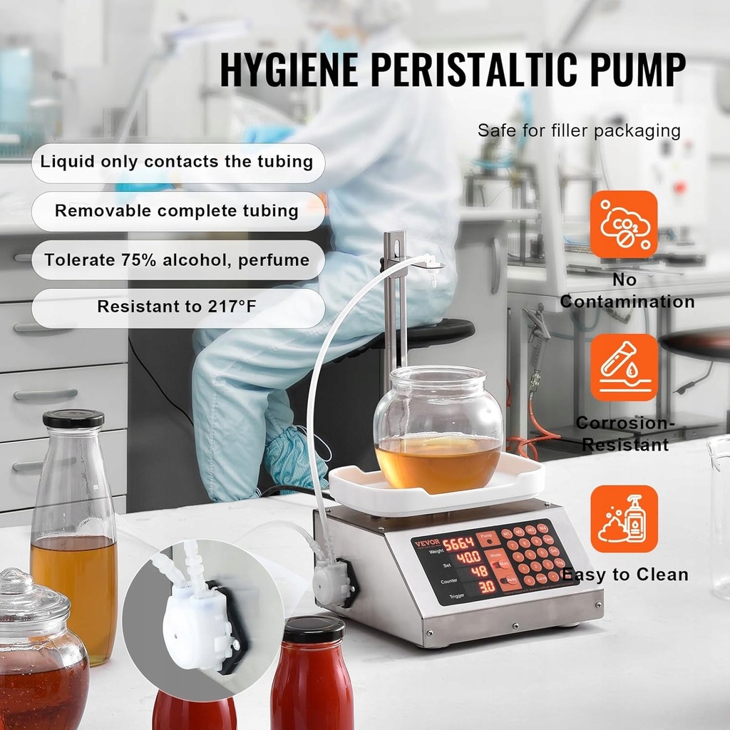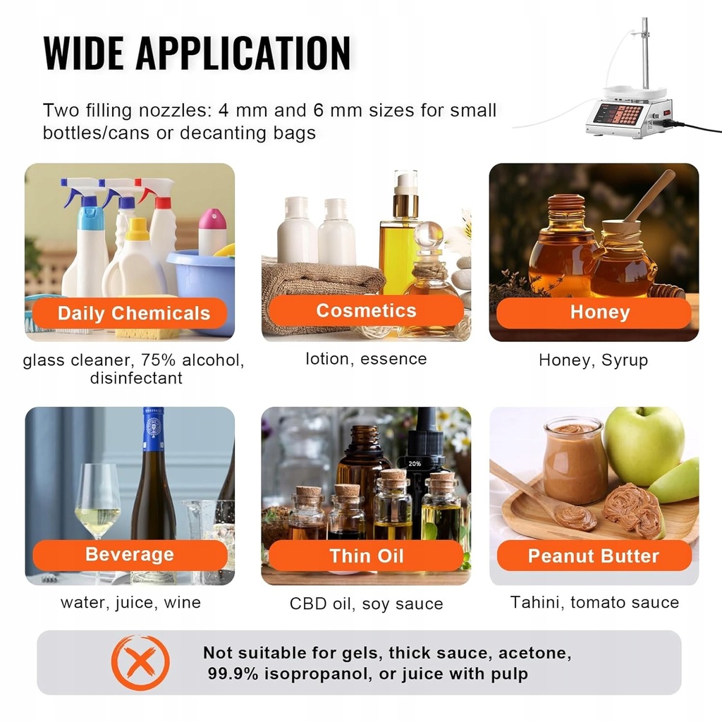 Inteligentna i precyzyjna ilość: Nasza maszyna do napełniania płynów jest wyposażona w cyfrowe sterowanie w zakresie wagi 0,01-0,11 funta / 5-50 g. Wystarczy wpisać żądaną ilość, a on zajmie się resztą. Umieść butelkę i uruchomi się automatycznie. Odejmuję wagę tary i zatrzymuje napełnianie po osiągnięciu ustawionej wagi. Gdy zbliża się do celu, zwolnij, aby osiągnąć tę dokładność.